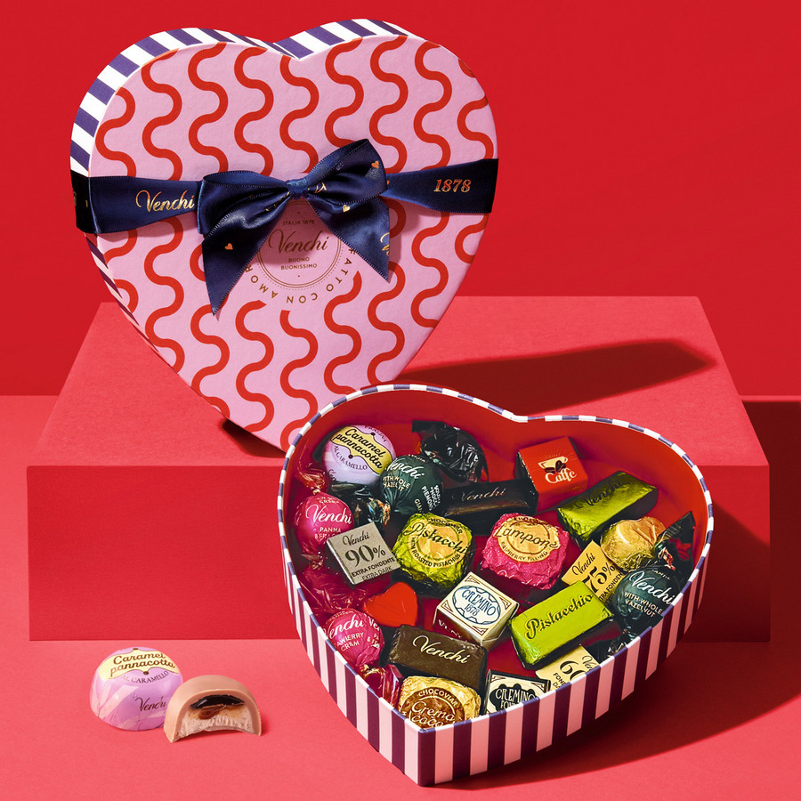 イタリア老舗ブランド・ヴェンキは、素材の質とデザイン性の高さでギフト感が強い。バレンタイン限定ボックスやハート型チョコレートは、見た目の華やかさと味の深さからプレゼントとして人気だ。##
